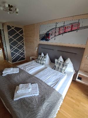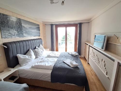 Tágas két- és négyágyas, szoba 2015-ben, alpesi stílusban berendezve. Zuhanyzós vagy kádas, felújított fürdőszobával ellátott, hajszárítóval felszerelt.