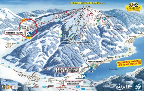 A Gerlitzen 1.911 m magas síterep Karintia központjában. 49 km hosszú, nagy szakértelemmel karbantartott pályarendszer, ahol modern ülőliftek szállítják a síelőket, a jobbnál jobb, széles pályákra. Idei újdonság a fűtött 6 ülős lift, mely a meghosszabított Wörthersee Abfahrt pályához épült. Ezzel minden fő pálya mellett korszerű, gyors ülőliftek működnek. A csúcsról páratlan panoráma tárul a síelő elé minden irányban. Itt minden tudásszinten találunk megfelelő pályát. A freestyle kedvelőinek Freeride-Area és a Freestyle-Park nyújt felhőtlen szórakozást. Itt üzemel Karintia egyetlen 8 üléses felvonója is.
